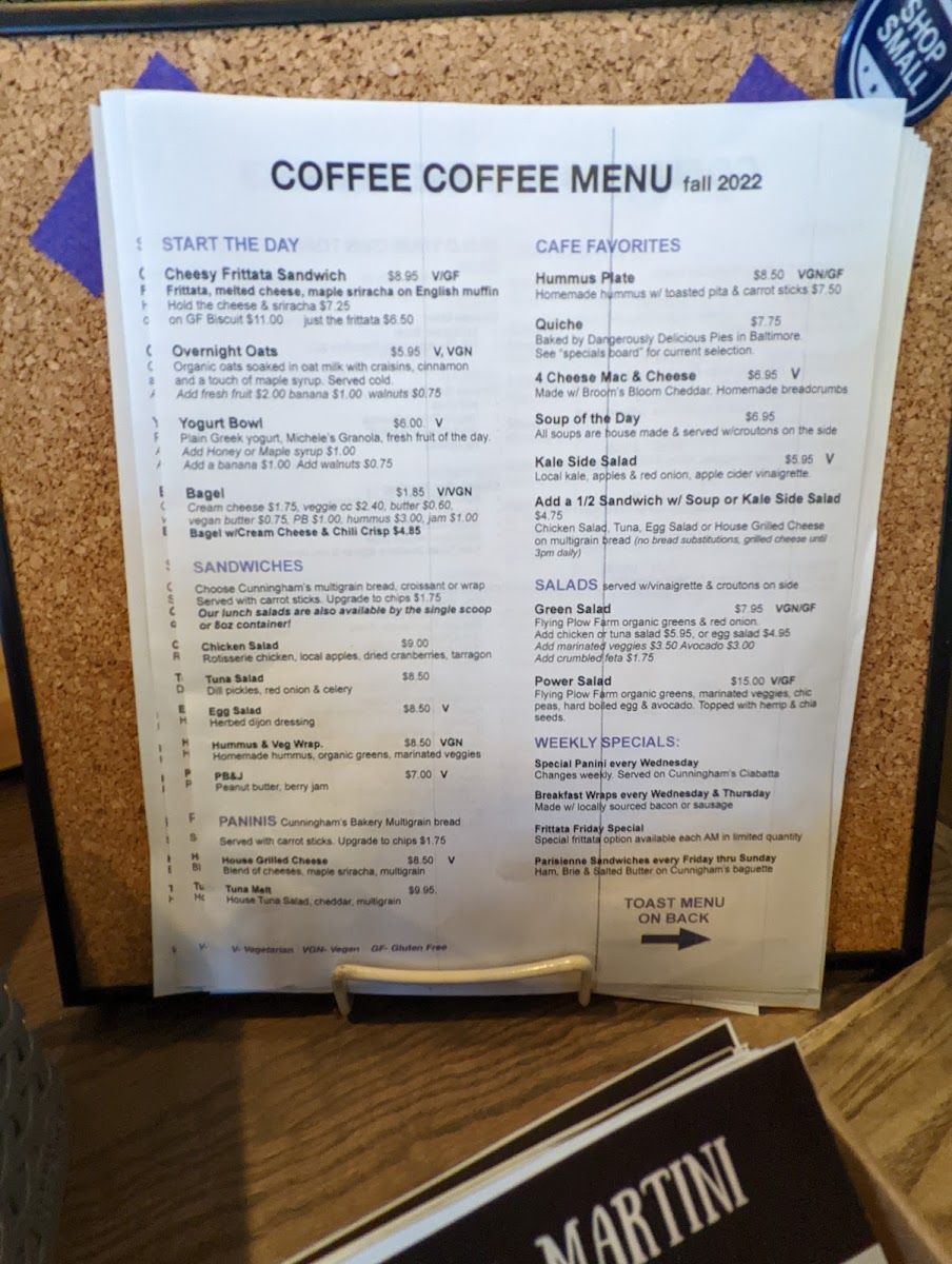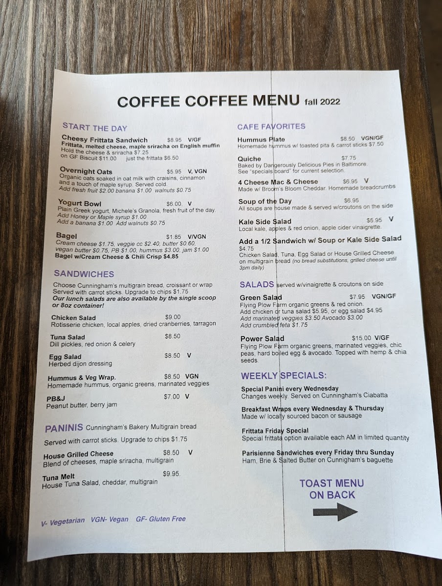 Coffee Coffee, located at 5 Bel Air S Pkwy #117, Bel Air, MD 21015, offers a wide range of menu options that cater to various tastes and preferences. Whether you're in the mood for a refreshing cold drink or a warm comforting meal, this cozy café has it all.